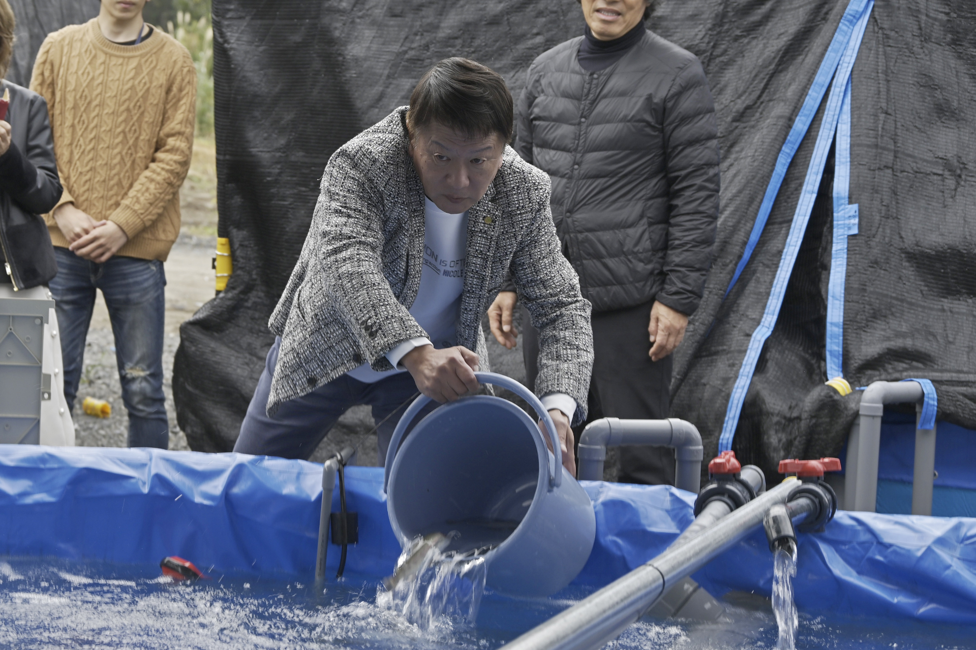 印刷ネット通販大手のプリントネット株式会社(本社=鹿児島市)は、新規事業として養殖業に参入した。印刷事業とは全く異業種だが、「既存の設備を整え、環境を管理し、品質を維持する」という点では多くの共通点がある。すでに1014日定款を変更していたが、このたび鹿児島県日置市入来浜地区の養殖試験用設備が完成し、1211日に放流式を行った。