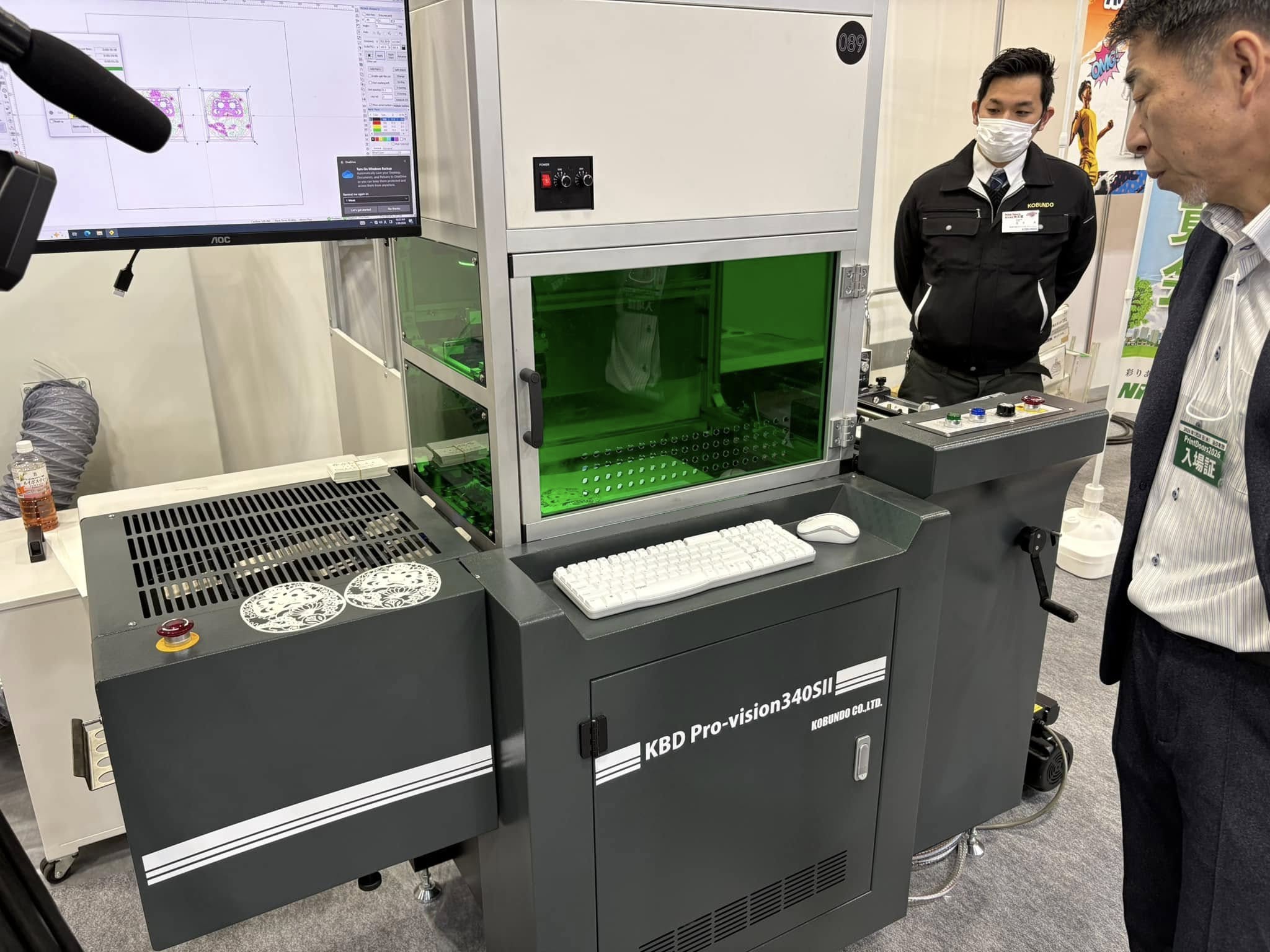 特に今回はオリジナルグッズのブームを見据え、トレーディングカードのデジタルブッシュ抜き加工機やTシャツの昇華転写機などが出展された。